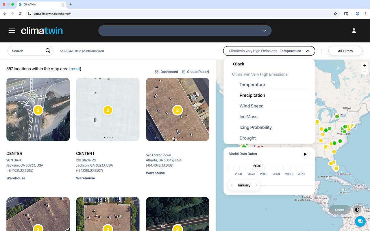 Climate Risk Intelligence™, die führende Lösung von ClimaTwin, ist eine intelligente, KI-gestützte Plattform für klimadatenbasierte Erkenntnisse, die Eigentümer, Betreiber, Engineering-Fachleute, Investoren, Berater, Versicherer, öffentlich-privaten Partnerschaften und anderen Interessenvertreter unterstützt, die Risiken durch extreme Wetterlagen und langfristige klimatische Veränderungen zu bewerten und zu dokumentieren. Durch die direkte Verknüpfung von Erkenntnissen mit der finanziellen Leistung, dem Risikomanagement und den Compliance-Verpflichtungen ermöglicht ClimaTwin den Unternehmen auf der ganzen Welt, ihre Resilienz zu planen, sich proaktiv anzupassen und Wettbewerbsvorteile zu erzielen.